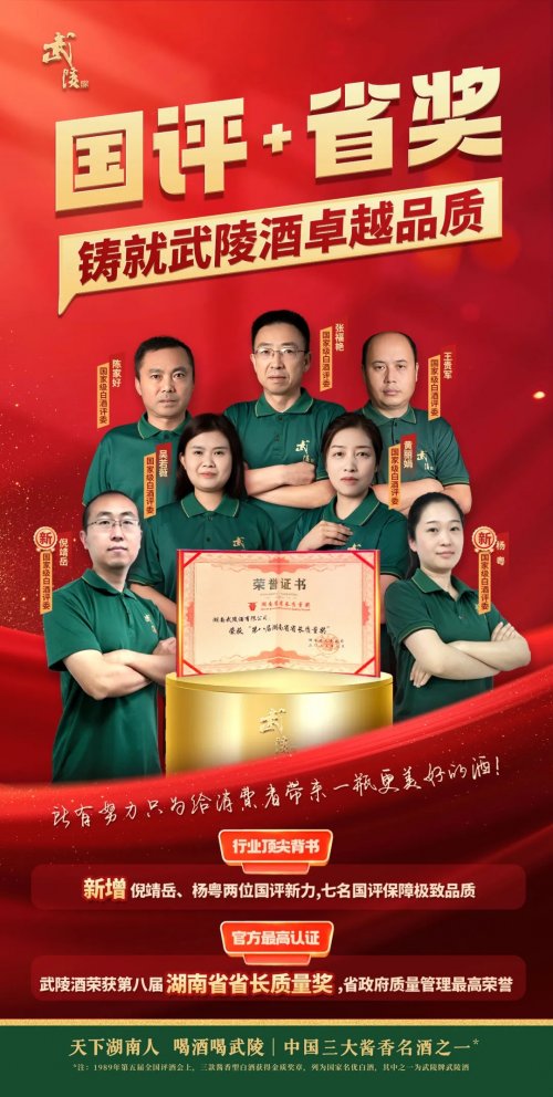 “国评+省奖”的双重赋能,让武陵酒站在了新的发展起点。企业相关负责人表示,未来将继续以管理为基、品质为魂、创新为翼,深耕湖湘沃土,依托核心技术优势与完善管理体系,持续提升产品品质与品牌影响力。