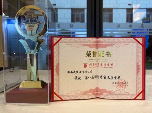 11月10日下午,2025年全省质量工作暨省长质量奖颁奖大会举行,湖南武陵酒有限公司凭借卓越品质从众多参与申报的企业中脱颖而出,荣获“第八届湖南省省长质量奖”,成为本届唯一获奖的白酒企业,以实力诠释湘酒品质新高度。