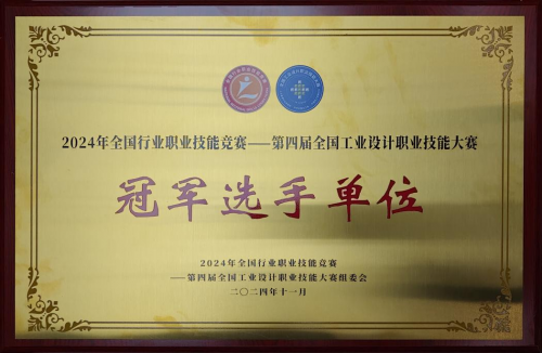 ▲曹建斌(左一)获第五届全国工业设计职业技能大赛职工组一等奖第一名,张玉藩(右一)获第五届全国工业设计职业技能大赛学生组一等奖第二名